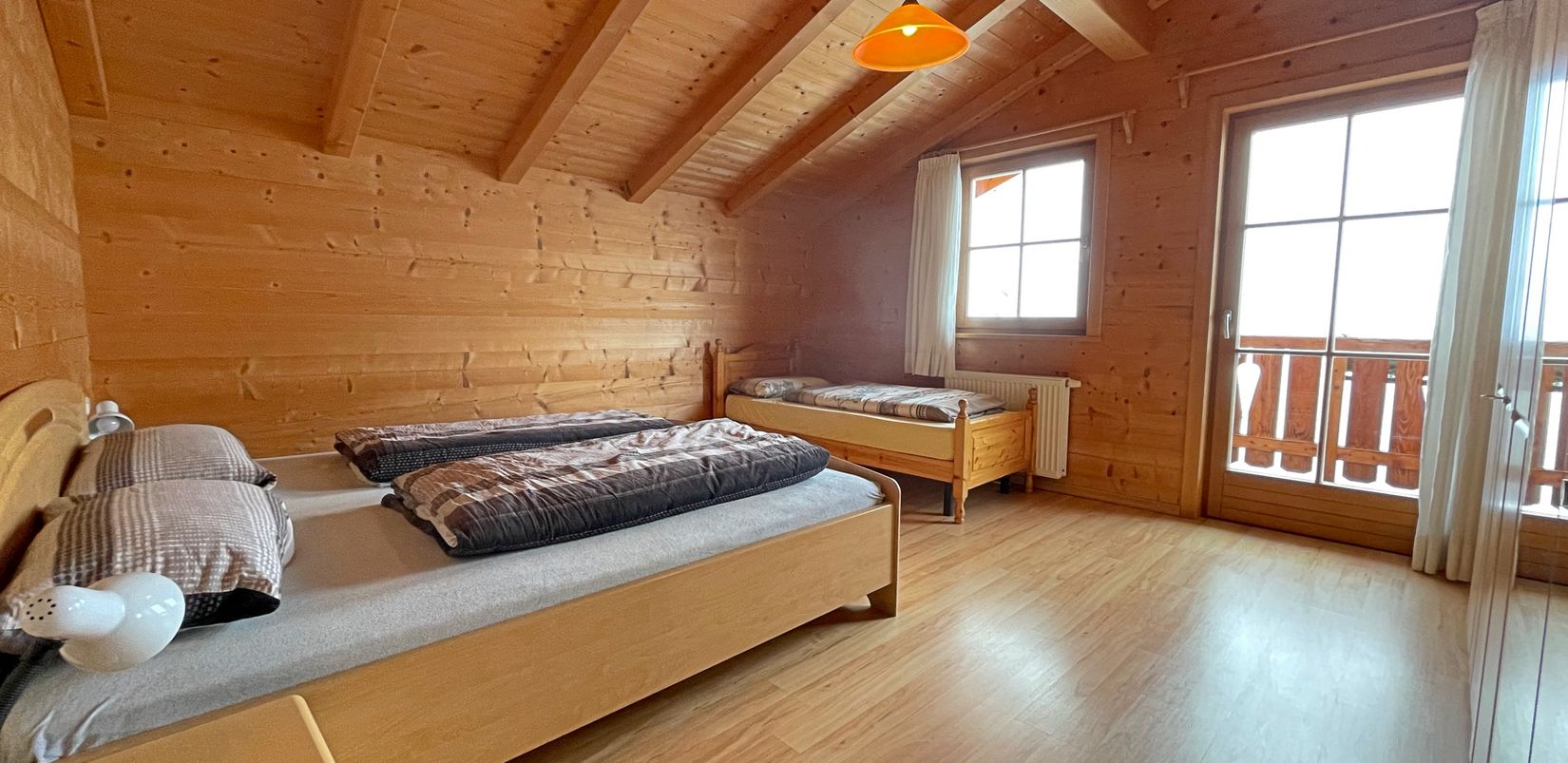 Unsere geräumigen Ferienwohnungen sind mit allem ausgestattet, was ihr für eine erholsame Auszeit braucht. Die warme Atmosphäre in den Massivholzzimmern garantiert euch ruhige und entspannte Nächte.