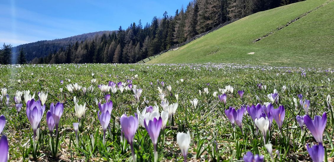 Erlebt, wie die Natur aus dem Winterschlaf erwacht. Wenn die ersten Krokusse blühen und die Luft herrlich mild wird, ist die beste Zeit für ausgiebige Spaziergänge und Wanderungen in den mittleren Lagen, um die herrliche Ruhe und das frische Grün der Lärchen zu genießen.